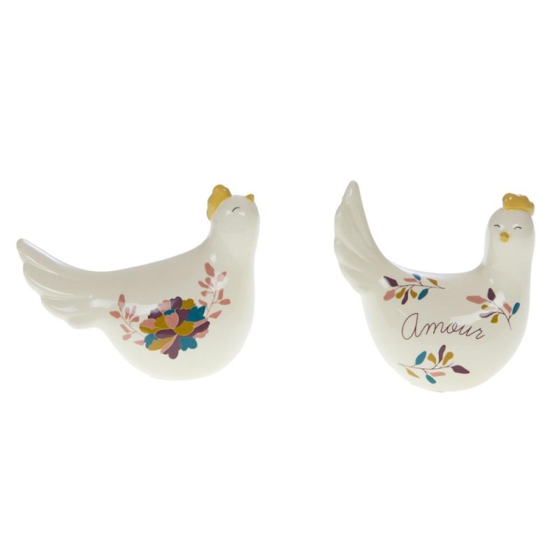 Apportez une touche de charme et de bonne humeur à votre intérieur avec le duo de poules décoratives Paula signé Amadeus. Réalisées en céramique, ces adorables poules se distinguent par leurs couleurs vives et leurs motifs floraux délicats, qui insufflent instantanément une note de gaieté à votre décoration. Placées sur une étagère, une console ou une table, elles créent une ambiance chaleureuse et conviviale. Compactes et légères, elles s’intègrent facilement dans tous les styles d’intérieur, du plus moderne au plus rustique. Un duo plein de douceur et de fantaisie, idéal pour égayer votre maison tout au long de l’année. (lot de 2)