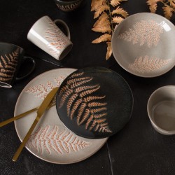Apportez une touche naturelle et raffinée à vos repas avec cette assiette creuse en grès. Son décor délicat de feuilles orangées sur fond taupe crée une ambiance chaleureuse et conviviale. Parfaite pour servir soupes, pâtes ou salades, elle allie esthétique et praticité au quotidien. (lot de 6)