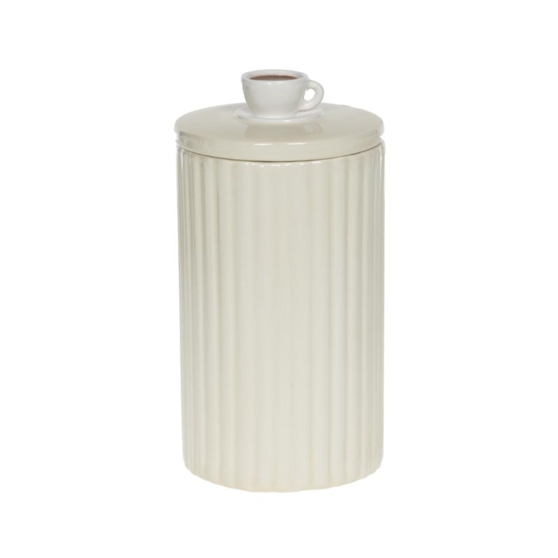 Sa finition cannelée, à la fois moderne et intemporelle, sublime sa silhouette épurée tandis que son couvercle, délicatement surmonté d’un bouton en forme de tasse, ajoute une note chaleureuse et originale. Pensée pour allier esthétique et praticité, elle permet de conserver vos aliments à l’abri de l’humidité tout en apportant du charme à votre plan de travail.