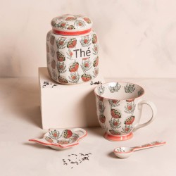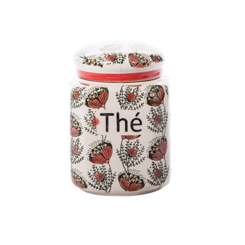 Apportez une touche d’élégance et de raffinement à votre pause thé avec le pot hermétique à thé de la gamme Indi. Fabriqué en dolomite de haute qualité, ce pot allie robustesse et légèreté pour préserver parfaitement la fraîcheur de vos feuilles de thé. Son design délicat, orné de motifs floraux aux teintes blanc et rouge, évoque à la fois tradition et modernité, faisant de cet accessoire un véritable objet décoratif pour votre cuisine ou votre salon.