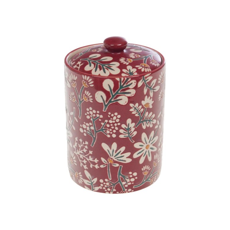 Apportez charme et praticité à votre cuisine avec le pot hermétique Adèle 17 cm en grès signé Amadeus. Son décor floral délicat sur fond bordeaux apporte une touche chaleureuse et élégante à vos espaces culinaires.