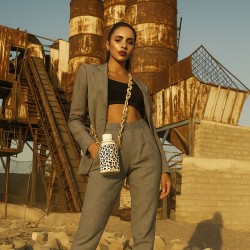 Coffret bouteille isotherme blush léopard 35 cl avec chaine YOKO DESIGN