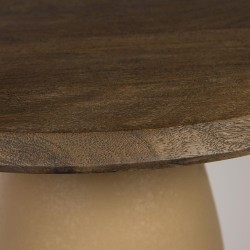Apportez une touche naturelle et contemporaine à votre intérieur avec le bout de canapé Dalia. Conçu en bois de manguier pour son plateau, il associe authenticité et chaleur à un piètement en résine finition dorée qui lui confère une allure moderne et élégante.