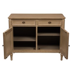 Apportez une touche d'élégance classique à votre intérieur avec ce buffet en MDF bayur. Ses deux tiroirs et deux portes offrent un rangement pratique et organisé, tandis que son coloris bois naturel et ses pieds tournés créent une ambiance chaleureuse et raffinée dans votre salon ou salle à manger.