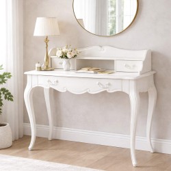 fondez pour la délicatesse incomparable du bureau apolline, composé d'acajou et de panneaux de fibres. pratique grâce à ses tiroirs, les jolies courbes de ses boiseries et la minutie de ses détails ne vous laisseront pas indifférent. pour compléter votre décoration dans le même esprit, découvrez la gamme apolline, constituée de pièces plus raffinées les unes que les autres.