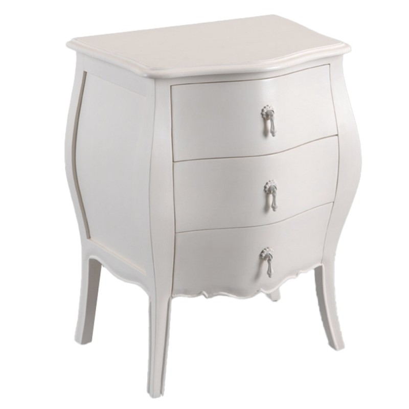 cette mini commode trois tiroirs en bois et mdf blanche sera une pièce forte de votre décoration. son charme son elégance et son aspect classique conviendront pour tous types d'intérieurs.