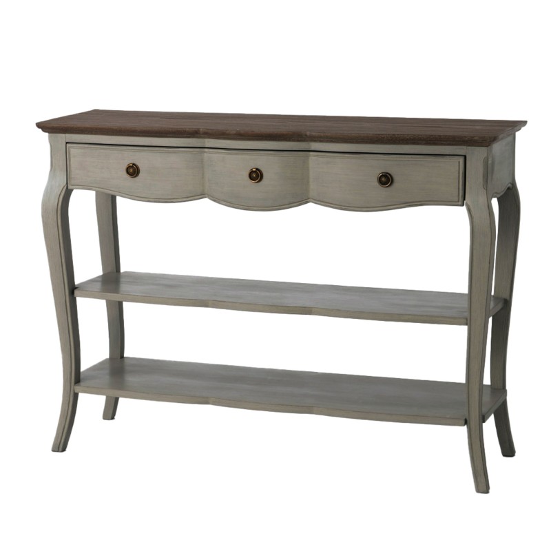 La douceur de ses courbes aux accents baroques et la minutie de ses finitions, allant de sa délicate patine aux superbes détails de ses poignées dorées et gravées, font de la console Maddy taupe une pièce d'un raffinement rare , composée de bois de bayur, de placage de bois mindi et de panneaux de fibres à moyenne densité, cette superbe pièce trouvera parfaitement sa place dans votre intérieur.