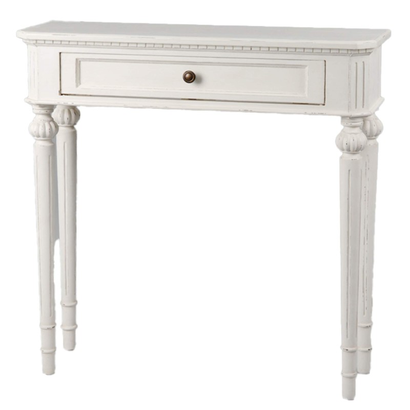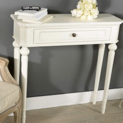 Apportez une touche d'élégance classique à votre intérieur avec cette console blanche patinée. Son tiroir pratique accueille vos petits objets tandis que ses lignes fines et ses pieds sculptés créent une ambiance douce et raffinée parfaite pour un coin lecture ou une entrée accueillante.