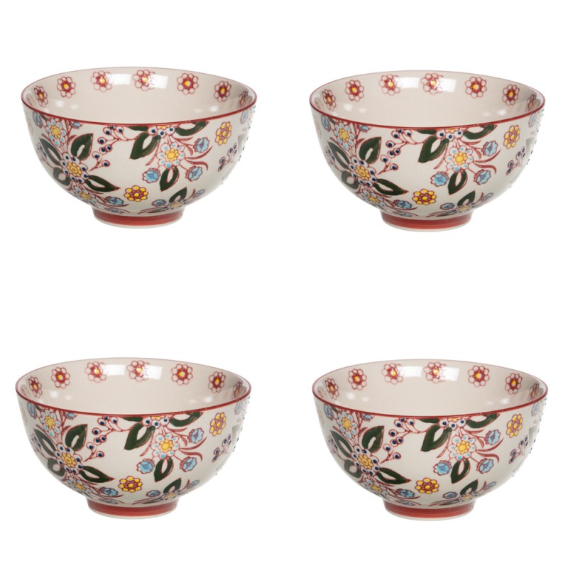 Découvrez le Coffret de 4 coupelles Siena 11 cm, une pièce élégante et raffinée de la gamme Siena signée Table Passion. Fabriquées en grès de haute qualité, ces coupelles allient robustesse et esthétique pour sublimer toutes vos tables. Leur design délicatement travaillé présente un motif floral coloré et harmonieux, mêlant des touches de rouge, jaune, bleu et vert sur un fond crème, apportant une touche de fraîcheur et de convivialité à vos repas. Chaque coupelle est finie d’un liseré rouge subtil qui souligne avec élégance leur forme légèrement évasée. Idéales pour servir des amuse-bouches, des sauces ou des desserts, ces coupelles de 11 cm sont à la fois pratiques et décoratives.