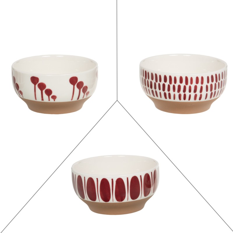 Les motifs rouges graphiques, appliqués sur un fond blanc immaculé, créent un contraste dynamique qui attire le regard et transforme chaque mise en scène en véritable expérience visuelle. Chaque motif évoque un style minimaliste et contemporain, inspiré par des lignes et formes organiques rappelant l’esthétique méditerranéenne. (lot de 3)