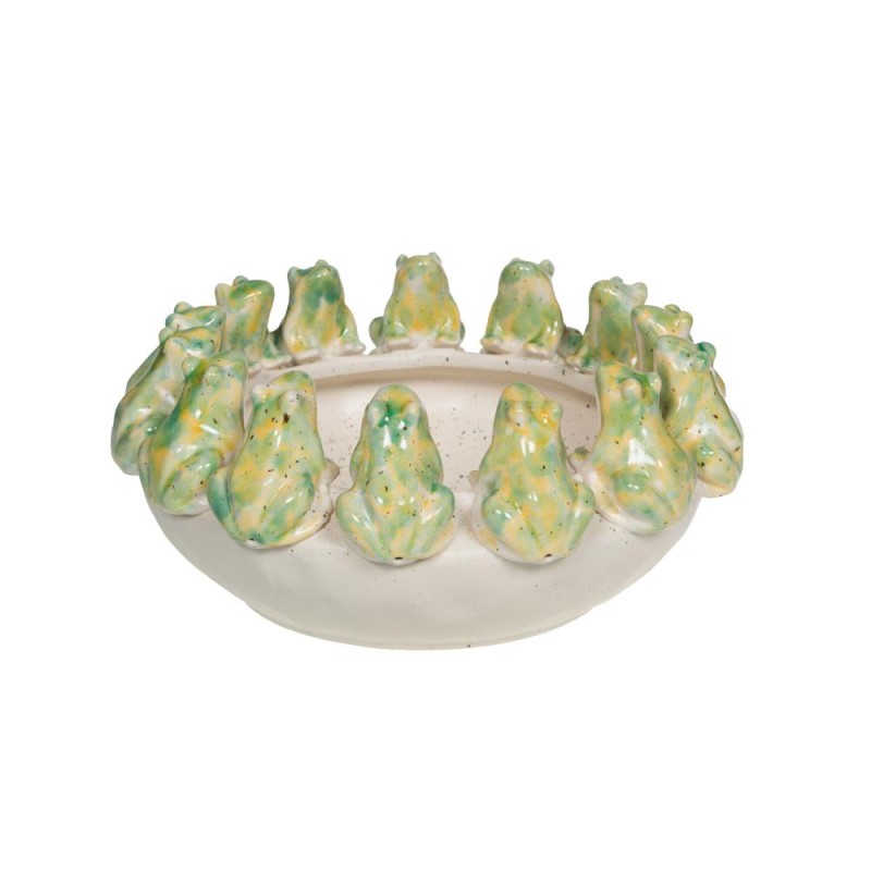 Apportez une touche d’originalité et de poésie à votre intérieur avec cette superbe coupe en céramique émaillée, délicatement entourée de petites grenouilles aux teintes vertes et dorées.