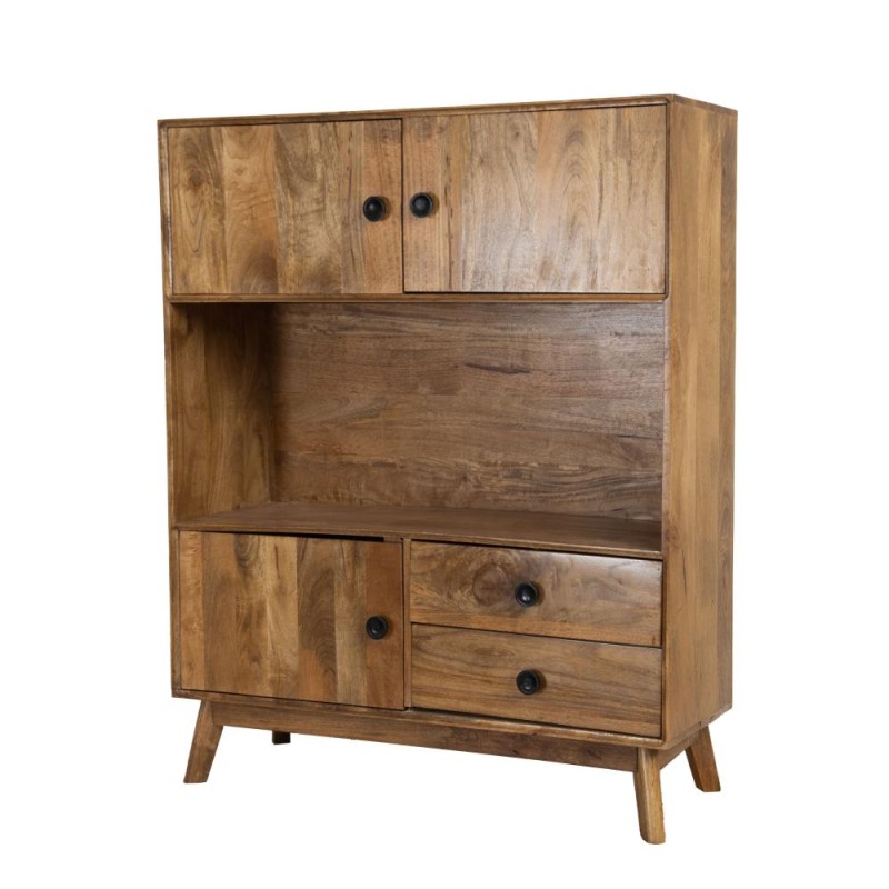 Avec ses dimensions pratiques de 115×40×142 cm et un poids de 48 kg, cette bibliothèque offre une organisation intérieure mixte : étagères ouvertes pour exposer vos objets décoratifs, placards et tiroirs pour un rangement fonctionnel et discret. Idéale pour mettre en valeur vos livres et accessoires tout en optimisant l’espace, elle transforme votre intérieur en un lieu à la fois authentique et pratique.