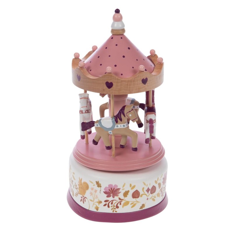 Offrez à votre enfant un moment de tendresse et de rêve avec le carrousel  Zoé prend le thé  signé Amadeus. Réalisé en MDF, ce charmant carrousel décoratif séduit par ses couleurs douces et ses finitions délicates, évoquant l’univers poétique de l’enfance. Son petit cheval tournant rappelle les manèges d’autrefois et invite à la rêverie et à l’imagination.