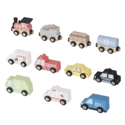 Offrez aux tout-petits des heures de jeu créatif avec ce set Amadeus, comprenant plusieurs véhicules en bois et un tapis de jeu imprimé, le tout présenté dans une étagère de rangement compacte (L20xl4xH28 cm).