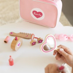 Son format compact (L16xl6xH21 cm) le rend idéal pour être transporté ou rangé facilement. Conçu pour le jeu de rôle, ce set permet aux enfants d’explorer leur imagination tout en s’initiant aux gestes de beauté, dans le respect de matériaux durables et écologiques.