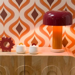 Apportez une touche de couleur et de modernité à votre intérieur avec la lampe Janice. Son abat-jour bordeaux profond et son pied orange lumineux créent une ambiance chaleureuse et tendance, idéale pour sublimer votre salon ou votre bureau avec une note joyeuse et design. Ampoule E27_15W non fournie.
