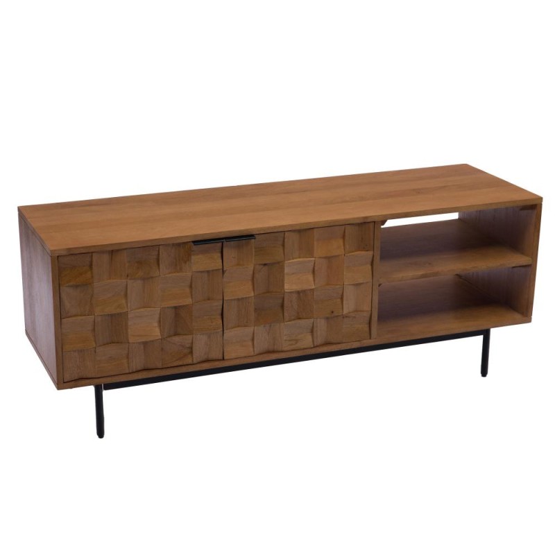 Apportez une touche d’élégance et de modernité à votre salon avec le Meuble TV 2 portes Arnold d’Amadeus. Conçu en bois de manguier, combiné à du MDF et des pieds en métal noir, ce meuble TV allie robustesse et design contemporain. Ses portes sculptées offrent un style unique tout en dissimulant vos appareils et rangements, permettant d’organiser TV, consoles, accessoires et objets déco avec élégance.