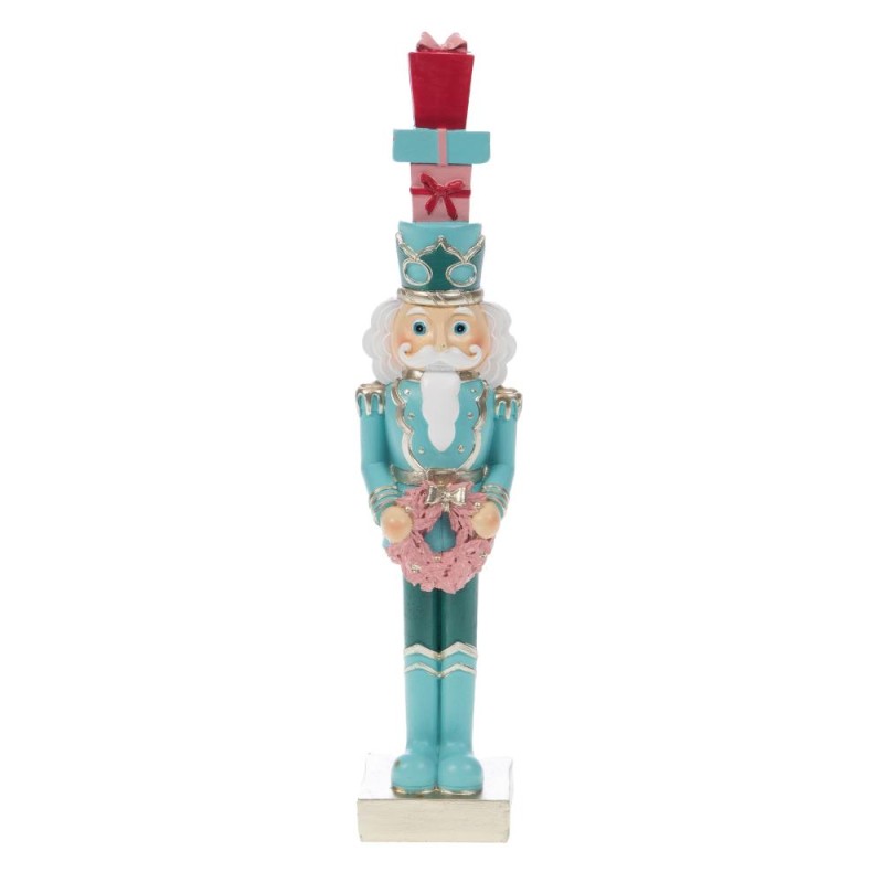 Apportez la magie et l’élégance de Noël dans votre intérieur avec ce superbe casse-noisette Santa en résine signé Amadeus. Haut de 27,5 cm, ce personnage iconique séduit par sa silhouette élancée et son design raffiné. Ses couleurs bleu turquoise et rouge apportent une touche lumineuse et chaleureuse, idéale pour créer une ambiance festive dès l’entrée dans votre maison.