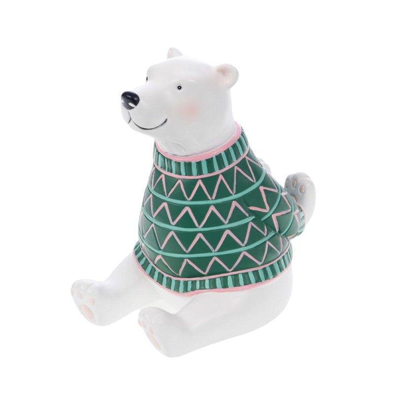 Apportez une touche de gaieté et de fantaisie à votre décoration avec l’Ours Hugues Farceur signé Amadeus. Cet adorable ours blanc au sourire malicieux séduit par son charme plein de tendresse et son style original. Habillé d’un pull vert orné de motifs roses, il attire le regard et apporte une note colorée à votre intérieur.