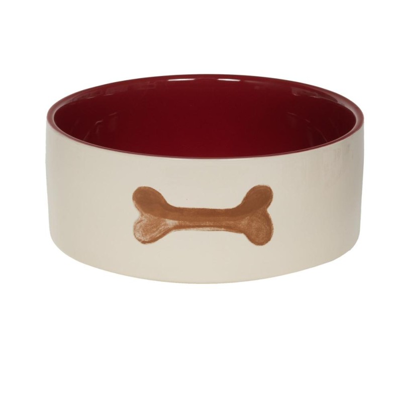 Son extérieur crème, délicatement orné d’un motif os en relief, apporte une touche décorative pleine de charme, tandis que son intérieur émaillé rouge facilite le nettoyage au quotidien. Avec un diamètre utile de 22,5 cm et une hauteur de 8 cm, elle est idéale aussi bien pour l’eau que pour les repas de votre chien.