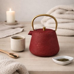 Réalisée en fonte robuste, elle garantit une excellente conservation de la chaleur pour maintenir vos infusions à la température idéale plus longtemps. Son décor rouge est rehaussé de lignes pailletées délicates, apportant une touche lumineuse et sophistiquée qui attire le regard.