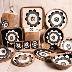 Exotique et contemporaine, la collection Zanzibar de Table Passion célèbre le charme naturel du bois de manguier, sublimé par des motifs graphiques noir et blanc au style unique. Les articles de la collection Zanzibar se distinguent par leur fabrication artisanale et leurs finitions soignées, parfaits pour recevoir avec style ou apporter une note raffinée à votre quotidien.