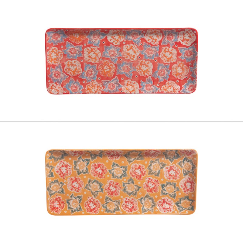 Préparez et servez vos cakes et pâtisseries avec élégance grâce au plat Zéphyr 35x15 cm en grès. Ses motifs floraux caractéristiques, déclinés dans des tons rouge profond et moutarde dorée, apportent une touche colorée et raffinée à votre table ou buffet. (1 modèle aléatoire)
