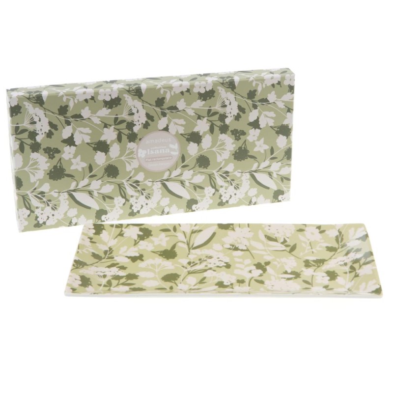 Apportez une touche d'élégance naturelle à votre table avec ce plat rectangulaire ISANA en porcelaine New Bone China. Son motif floral délicat dans des tons verts et blancs invite à une ambiance fraîche et raffinée, parfaite pour sublimer vos repas au quotidien ou lors d'occasions spéciales.