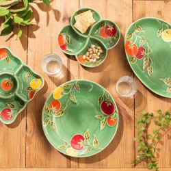 La collection Pomodoro de Table Passion met en avant la générosité des saveurs méditerranéennes. Ses motifs de tomates rouges et jaunes, contrastant avec un vert profond, insufflent chaleur et gourmandise à la table. Réalisée en grès résistant, elle se décline en plats variés, parfaits pour partager apéritifs et repas conviviaux dans un esprit authentique.