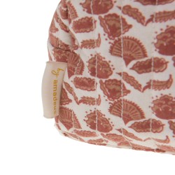 Réalisée en coton matelassé à la main, elle se pare d’un imprimé floral terracotta sur fond écru, inspiré des motifs d’antan revisités dans une palette naturelle et apaisante.