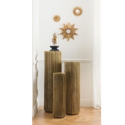 Apportez une note sophistiquée à votre intérieur avec cette sellette dorée au design élancé. Son plateau en bois naturel réchauffe l'ensemble, parfait pour exposer plantes ou objets déco. Compacte et élégante, elle s'adapte à tous les espaces pour sublimer votre salon ou entrée avec style et légèreté. Existe en différentes tailles.