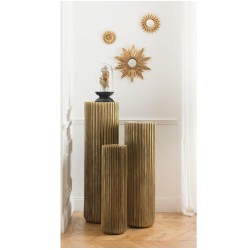 Apportez une note sophistiquée à votre intérieur avec cette sellette dorée au design élancé. Son plateau en bois naturel réchauffe l'ensemble, parfait pour exposer plantes ou objets déco. Compacte et élégante, elle s'adapte à tous les espaces pour sublimer votre salon ou entrée avec style et légèreté. Existe en différentes tailles.