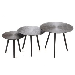 Apportez une touche contemporaine et élégante à votre intérieur avec le bout de canapé Luna. Réalisé en aluminium noir mat, il séduit par son design minimaliste et raffiné. Son plateau finement texturé aux motifs rayonnants attire le regard et lui confère un caractère unique.