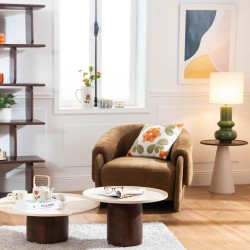 Apportez une touche contemporaine et chaleureuse à votre intérieur avec ce trio de bouts de canapé au design élégant. Leurs plateaux ronds en bois foncé contrastent harmonieusement avec les pieds coniques crème, créant un ensemble à la fois moderne et intemporel. Modulables selon vos envies, ils permettent de jouer sur les hauteurs pour mettre en valeur lampes, plantes ou objets décoratifs. Légers et pratiques, ces tables d’appoint allient esthétisme et fonctionnalité pour sublimer votre salon avec style.