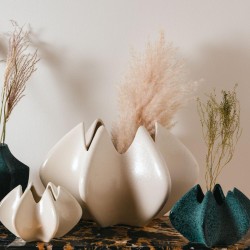 Apportez une touche de modernité et de caractère à votre décoration avec le vase Serena. Fabriqué en grès bleu, il séduit par sa forme sculpturale et originale aux courbes ondulées qui lui confèrent un style unique. Son diamètre de 18 cm en fait une pièce idéale pour accueillir vos bouquets séchés, fleurs fraîches ou simplement pour se suffire à elle-même en objet déco. Parfait sur une table, une étagère ou un buffet, ce vase design saura attirer tous les regards et donner du relief à votre intérieur.