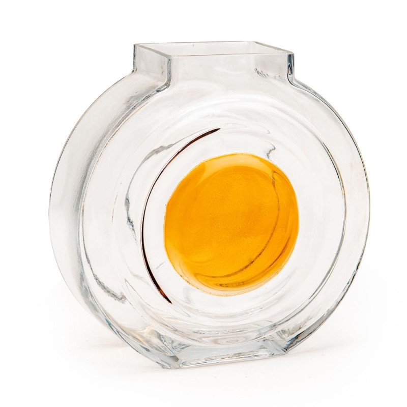 Apportez une touche d’élégance contemporaine à votre intérieur avec le vase Rond Ambre en verre. Son design circulaire original et son jeu de transparence mettent en valeur la chaleur de sa teinte ambrée. Avec ses 20 cm de hauteur, il est parfait pour accueillir des bouquets de fleurs séchées, quelques tiges fraîches ou simplement pour être exposé en pièce décorative. Ce vase unique allie modernité et raffinement, et devient un véritable atout charme dans toutes les ambiances, du minimaliste au plus sophistiqué.