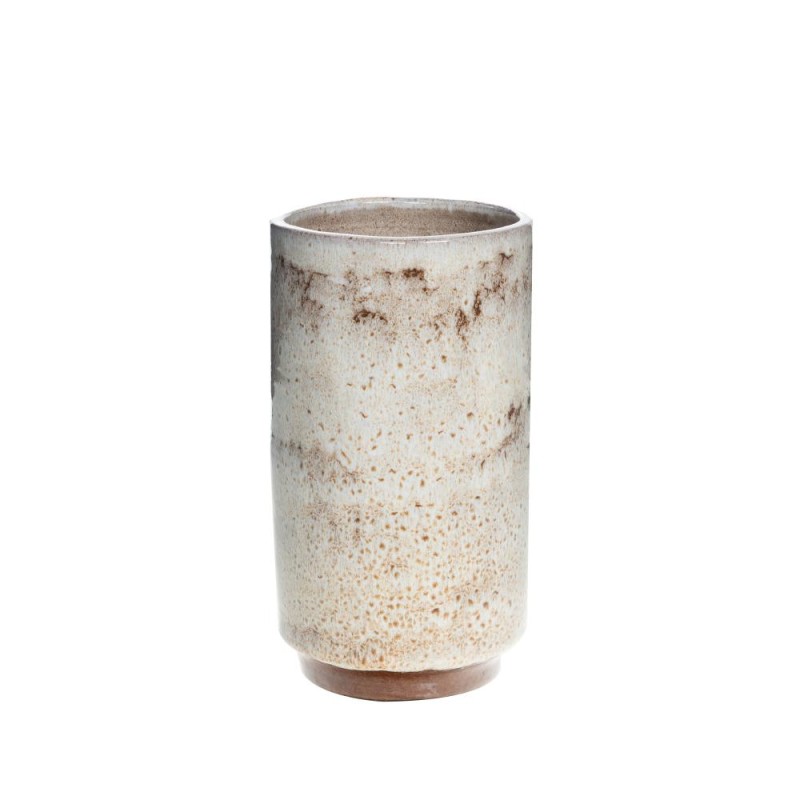 Apportez une note d'élégance naturelle à votre intérieur avec ce vase en terre cuite émaillée. Sa forme cylindrique et sa teinte douce aux nuances crème et marron créent une ambiance chaleureuse et authentique. Parfait pour sublimer vos fleurs ou simplement en objet déco, il invite à la simplicité et au charme artisanal.