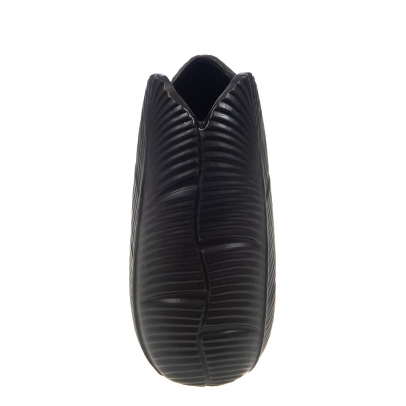Apportez une note exotique et raffinée à votre intérieur avec ce vase en céramique noire au design tropical. Sa silhouette élancée et sa texture nervurée évoquent la nature, parfait pour sublimer vos fleurs ou décorer seul. Un objet déco chic qui crée une ambiance chaleureuse et tendance.