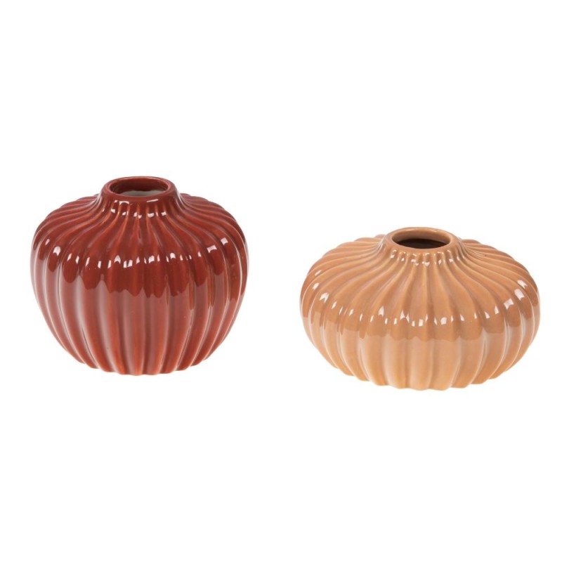 Apportez une note chaleureuse et raffinée à votre intérieur avec ce duo de mini vases striés en céramique. Leurs couleurs terre cuite et beige doux, associées à leur forme ronde et texturée, créent une ambiance cosy et naturelle. Parfaits pour sublimer une petite fleur ou simplement en décoration, ils invitent à la douceur et à l'authenticité.