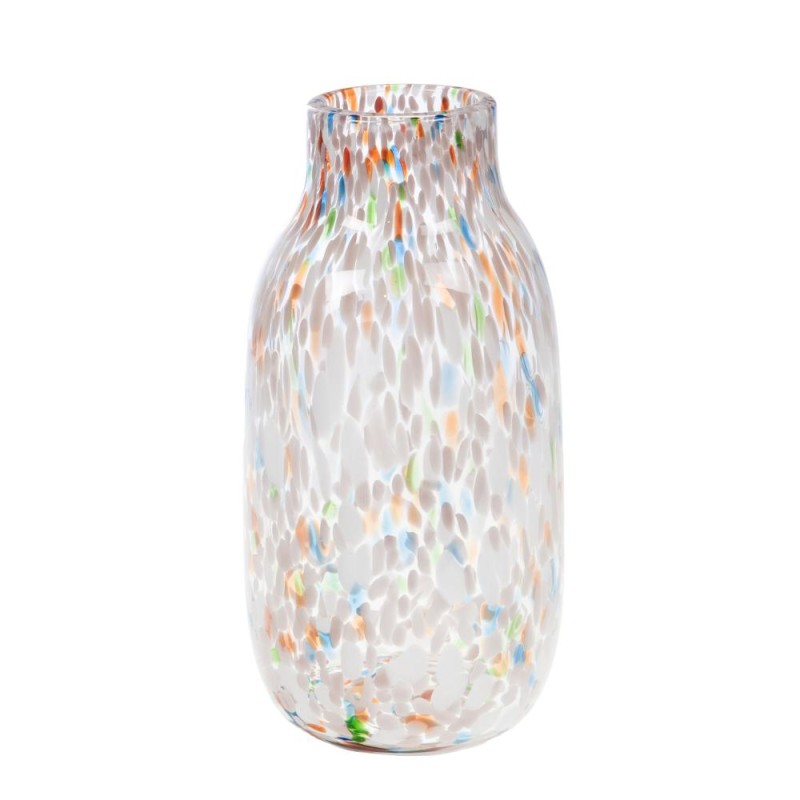 Apportez une touche de couleur et de lumière à votre intérieur avec ce vase Izak multicolore en verre soufflé. Sa silhouette élancée et ses motifs tachetés colorés créent une ambiance joyeuse et raffinée. Parfait pour sublimer vos bouquets ou décorer seul, il invite à la créativité et à la convivialité dans votre espace de vie.