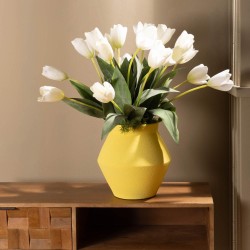 Apportez une touche lumineuse et contemporaine à votre intérieur avec le vase Avila jaune 29 cm. Avec son design facetté et sa silhouette généreuse, il attire naturellement le regard et devient une véritable pièce décorative.