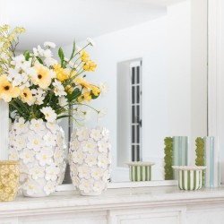 Ajoutez une touche de fraîcheur à votre intérieur avec le vase FELICIE en céramique. Élancé et rayé de bleu pâle, il se pare d'un ornement floral vert anis en relief pour un look joyeux et contemporain. Parfait pour une tige unique ou un petit bouquet, il illumine un rebord de fenêtre ou une étagère.